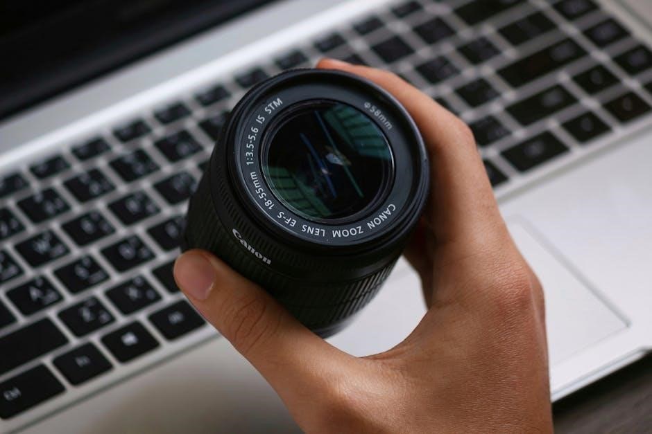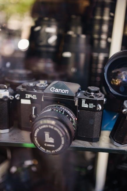 The T50’s mirror-based system ensures clear viewing and accurate framing. It’s designed for ease of use, particularly with Canon’s Speedlite flash units (244T, 255T, 277T). This guide will navigate you through every aspect of the T50, from loading film to mastering shooting modes, ensuring you capture stunning images with this classic camera.